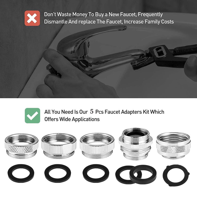 - ★★★【NOT FIT】--- Faucet adapters kit is ONLY COMPATIBLE with sink faucet with removable aerators, NOT SUITABLE for sink faucet that doesn't have a removable aerator like bathtub spout, shower pipe, or pump style faucet, ★★★ please consider this carefully before purchasing