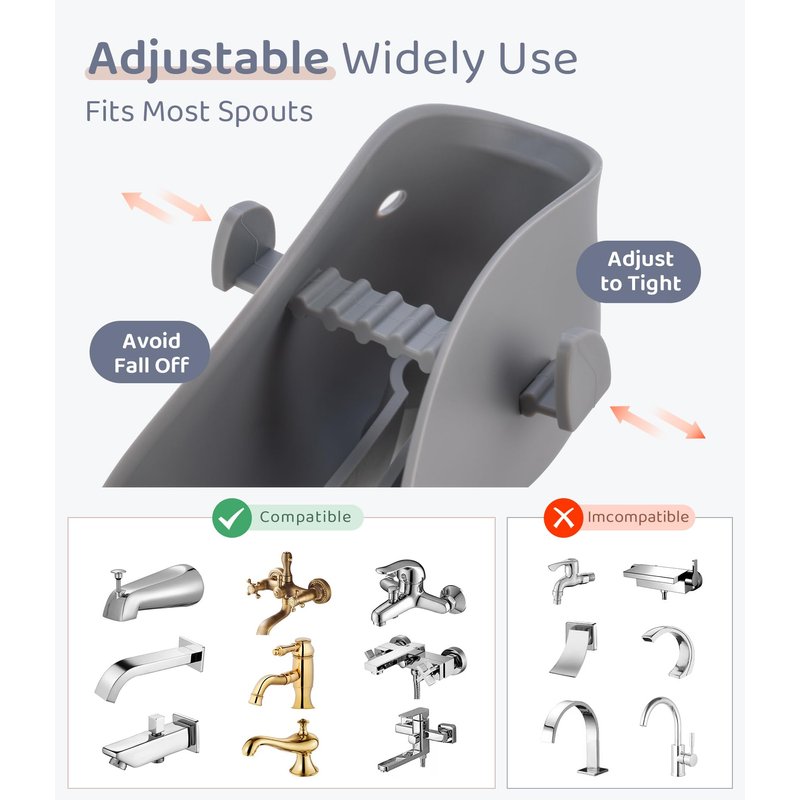 - 【EASY TO SET UP AND USE】 The sleek spout cover design includes an adjustable strap that fits snugly on most tub spouts, and a tail that's also a handy hook, so can hang around after baby's bath