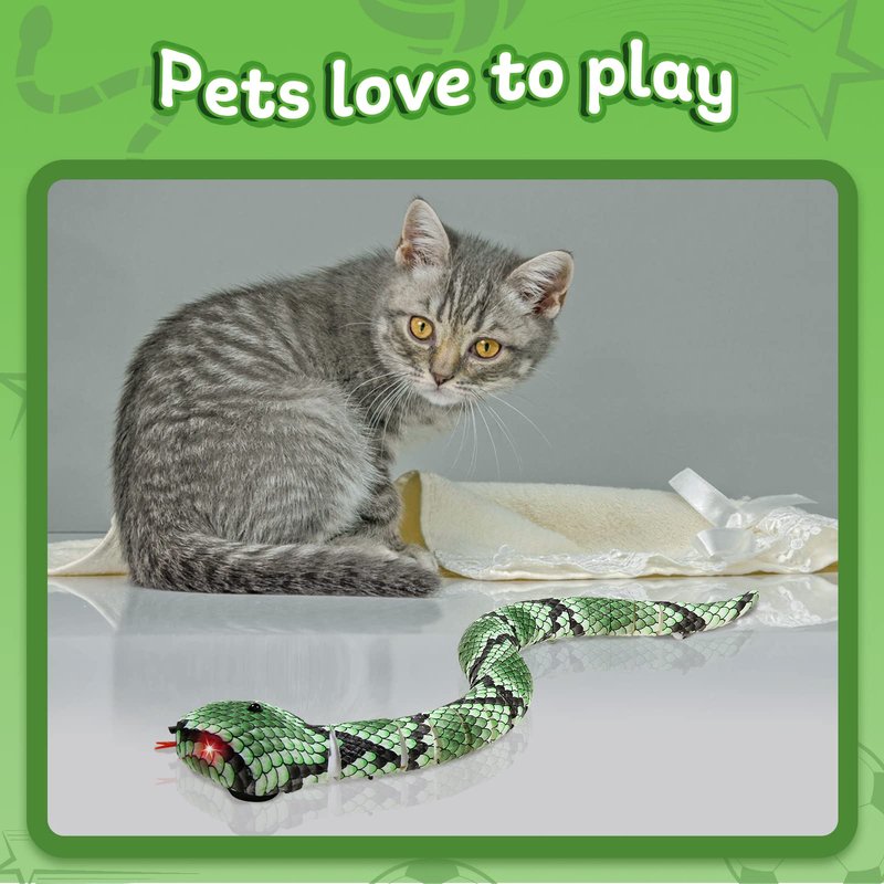 - 》》(Interactive Toys for Cats dog toy) smart sensing snake toy: 1*cat snake toy, 1* USB cable with no battery required. Note: it does not for rugs! The eyes of this snake toy will flicker and automatically avoid stuck situations when encountering obstacles. The tongue of this snake toy can flick and its tail can swing. 15.14 in length. The toys are made of safe and Abs material, the surface of the snake body is highly simulated, smooth and burr-free, we recommend using it on smooth ground.