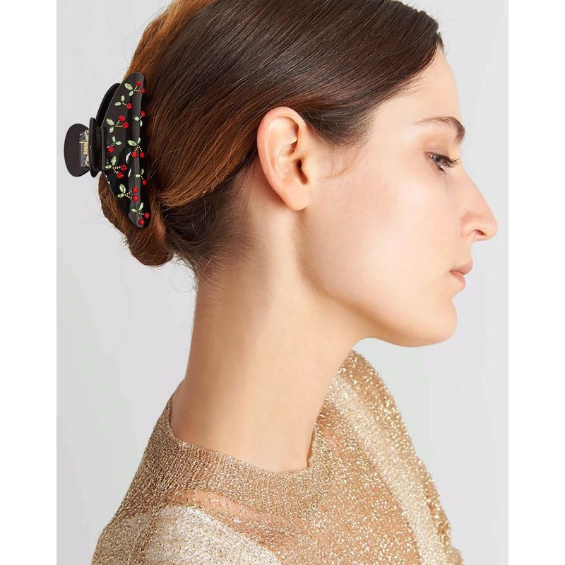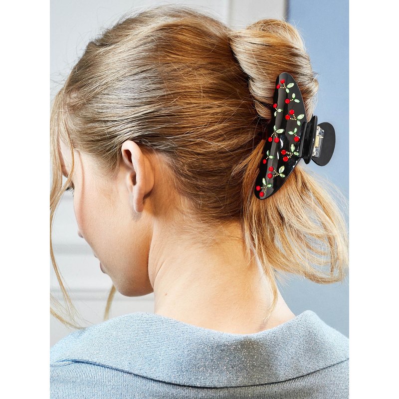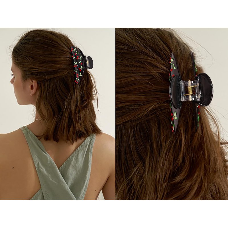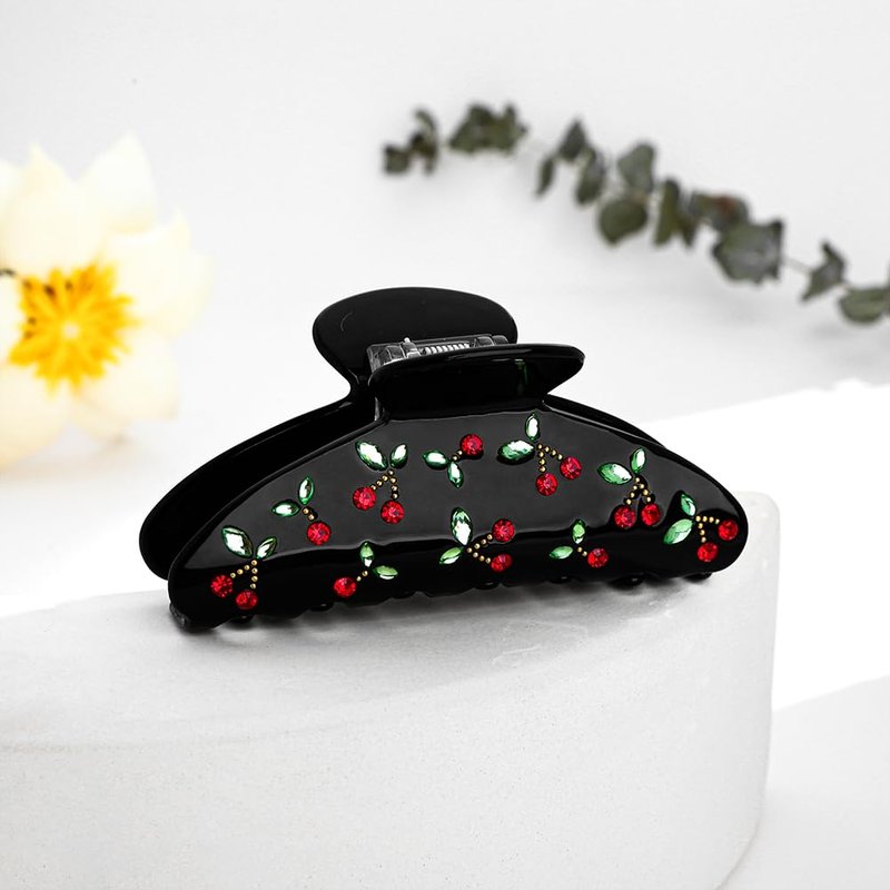 - Unique Design: Designed as a gorgeous red cherry rhinestone pattern,this black hair clip claw will add the perfect pop of color to your hair.