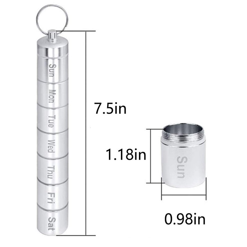 FAYALA Pill Disperser Waterproof 7 Days Pill Holder Travel Pill Container Portable Medicine Keychain Daily Airtight Pill Organizer(Silver)