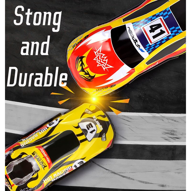 - Hight Quality Material:hese Party favor cars made of metal case,and the bottom plate is made of ABS plastic,Very durable,and rounded design,never hurt your kids hand. this pull back cars won't took apart though you played it for a long time.