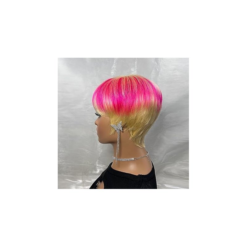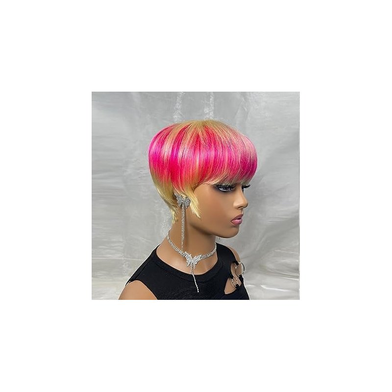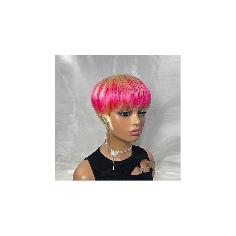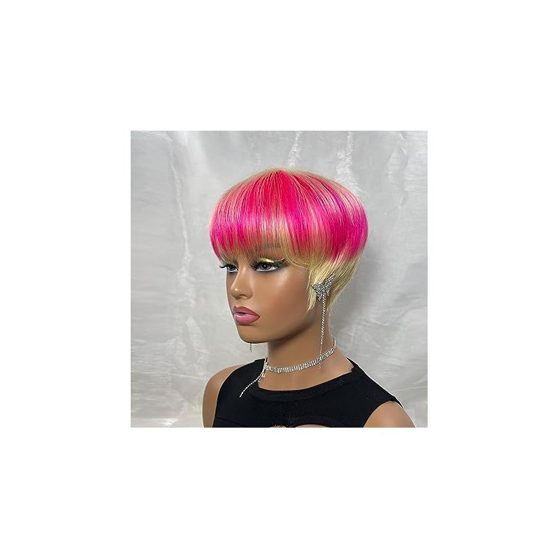 FCHW-wig Short Pink Ombre Hair Wigs For Women Short Pixie Cuts Wigs For Black Women Short Straight Ladies Wigs Synthetic Short Wigs For Women African American Women Wigs (SW21111)