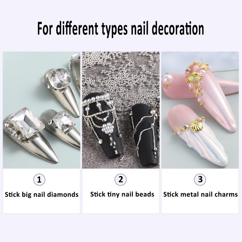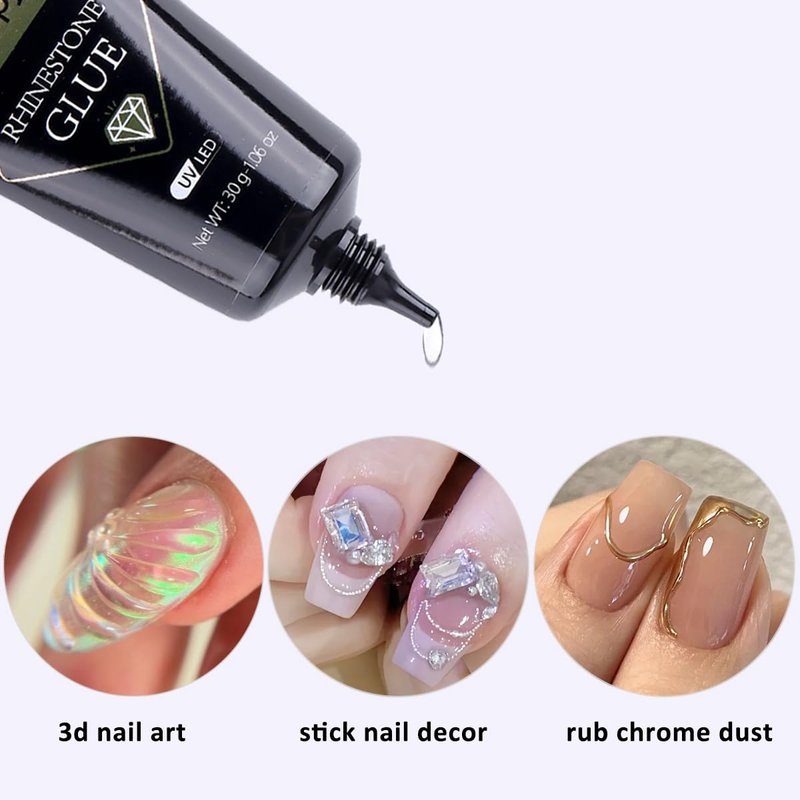- 【Long Last Nail Art Glue】The rhinestones glue is made of natural resin and is perfect for sticking the 3d nail decorations. After uv/led curing,the rhinestones will not fall off easily and can last for about 2 weeks.