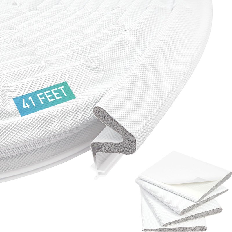 - WEATHER STRIPPING DOOR SEAL SET- FCSOTSPS 41 Feet white door weather stripping with 4 PCS door corner seals,made of wear resistant PE material,high density dark lightproof PU foam core inside,has great corrosion,collision and resilience to deform feature