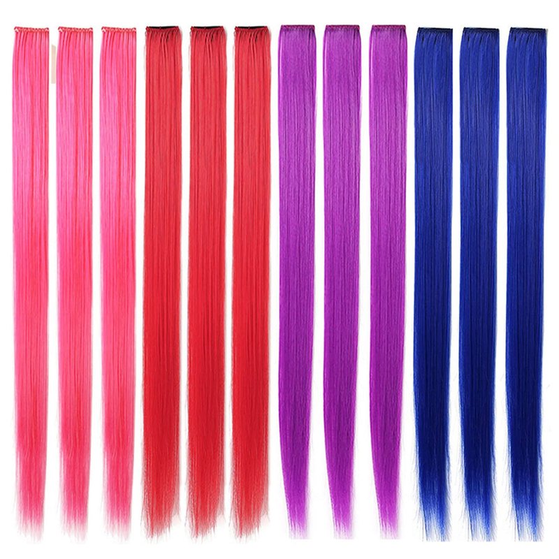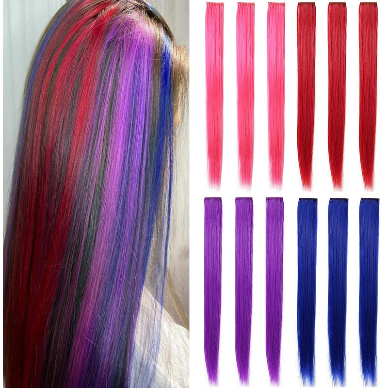 Fcysws 12PCS Red Blue Pink Purple Clip in Hair Extensions 21 Inch Heat-Resistant Synthetic straight Hair Extensions for Women Girls Gift Multi-Colors Party Highlights Clip in Synthetic Hairpiece