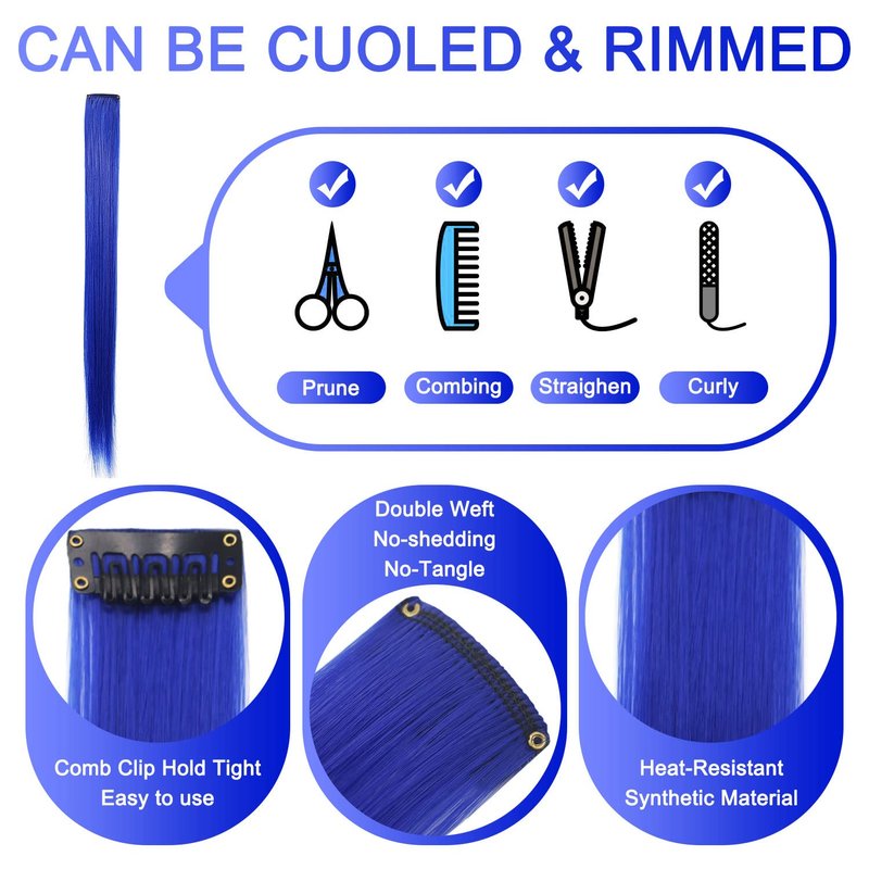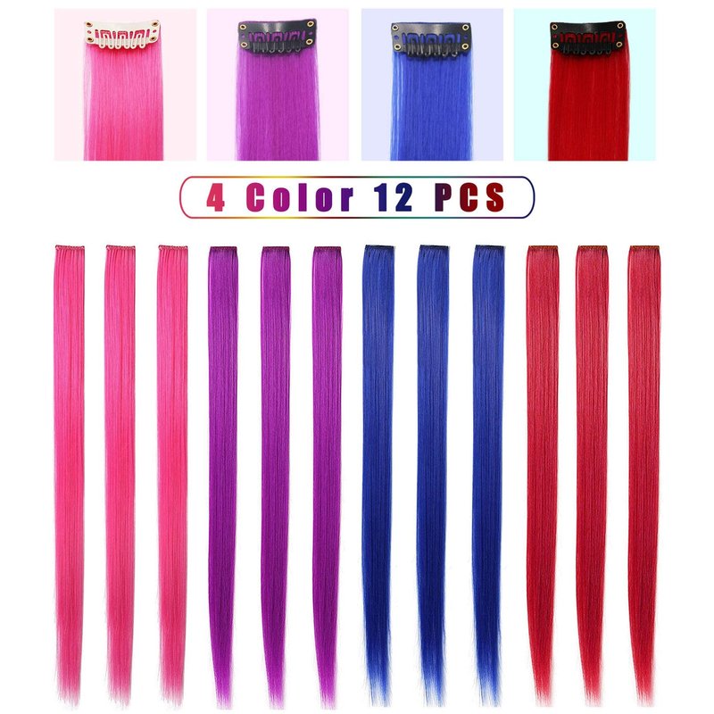 Hair Type: Straight Colors Include: Blue, Purple, Red, Pink, Each hairpiece has an individual package, which avoids them banding together or tangling up.