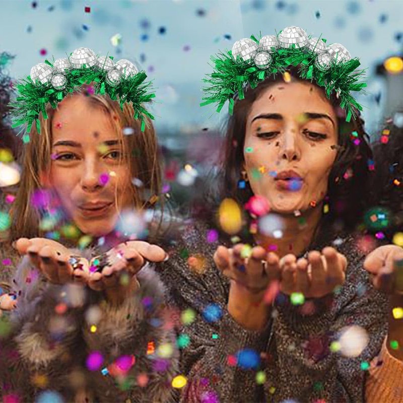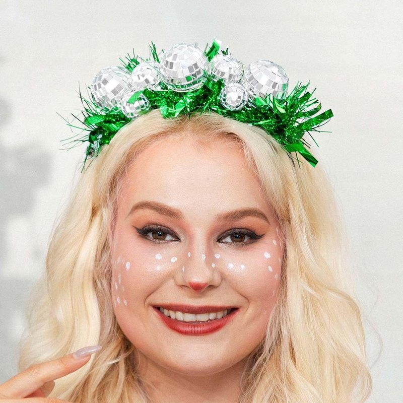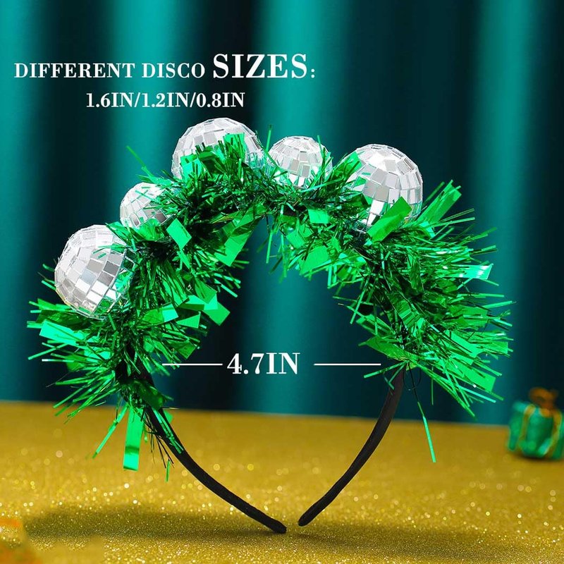 Fdesigner Disco Ball Headband Green Tinsel Hair Bands Christmas Headpiece Mirror Ball Hair Hoop Glitter Headwear 20S Women Head Bands St.Patrick Day Hair Accessories for Costume Props Gift
