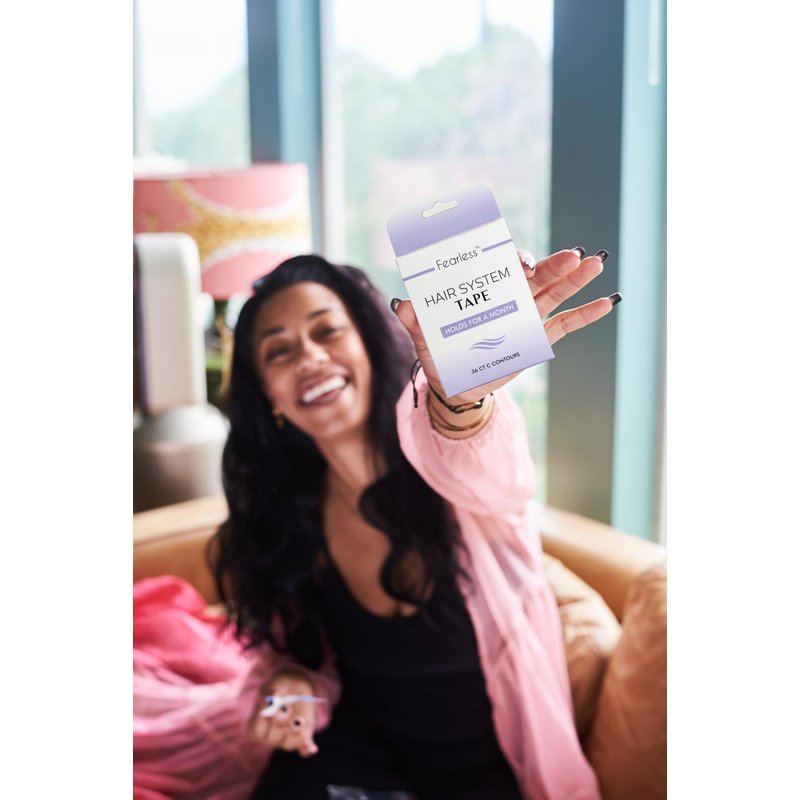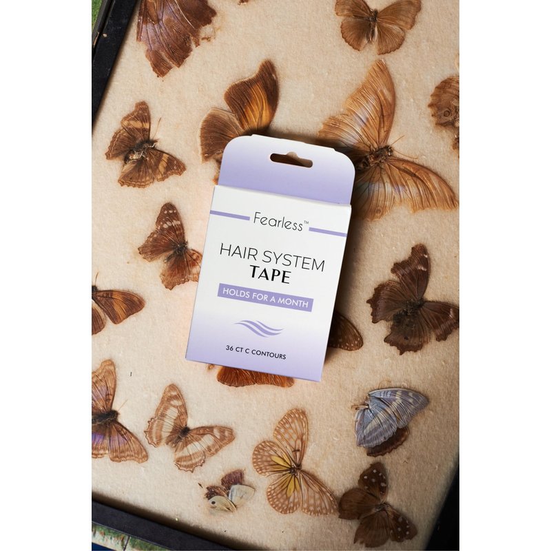 Ensures a strong and secure hold for 4+ weeks. Fearless Hair System Tape is stretchy, easy to apply, and works with both lace and poly units. If you don't want to reinstall your wig daily or weekly, this is the best option. Be Fearless with Hair System Tape. Directions: 1. Prepare the scalp by cleaning it with Fearless Alcohol Prep. 2. Remove the scored white liner. 3. Apply the adhesive side to the inside of the wig cap along the perimeter. Touch the adhesive as little as possible. 4. Repeat as needed. 5. Pull off the remaining white liner pieces when you're ready to attach the wig. 6. Place the hair system firmly on your scalp and hold for 10 seconds, making sure not to move it. Storage Info: Always store Fearless Hair System Tape in a room temperature-controlled environment (60-80°F). Keep in a well-ventilated, dark, dry, room away from heat, humidity, and light. After use, keep bag sealed to avoid the product drying out.