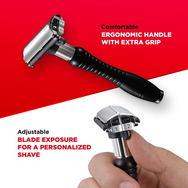 - Adjustable Shaving Head; Double Edge Razor Allows To Switch Between A Mild And Aggressive Shave; Enables A Close Shave That Is Superior To Multi Blade Shaves; With Innovative And Safe Technology