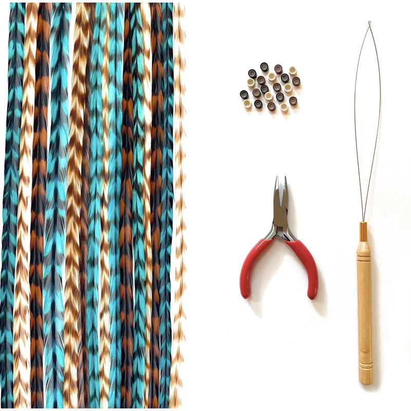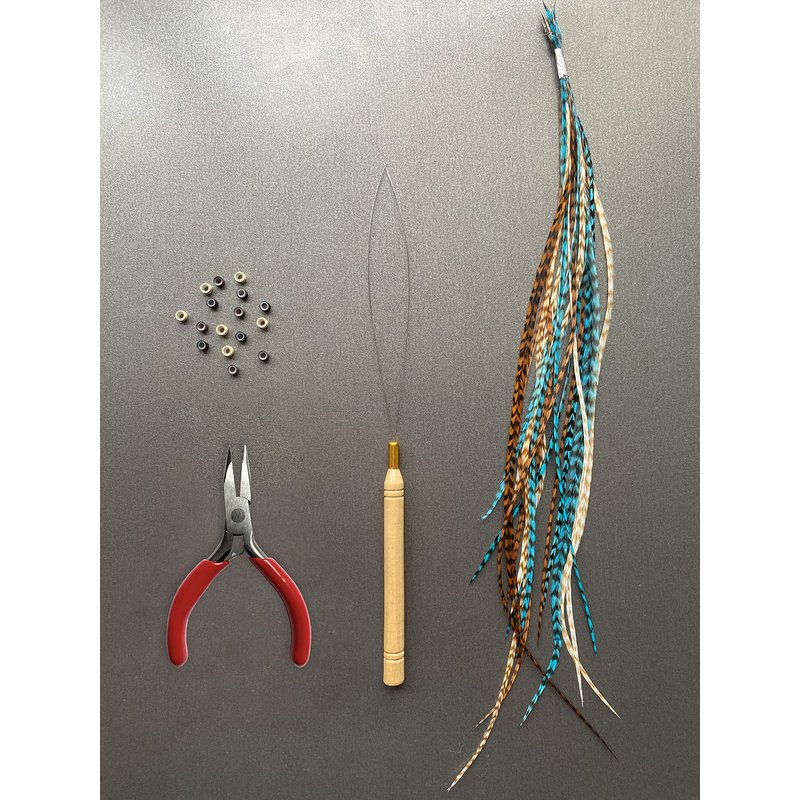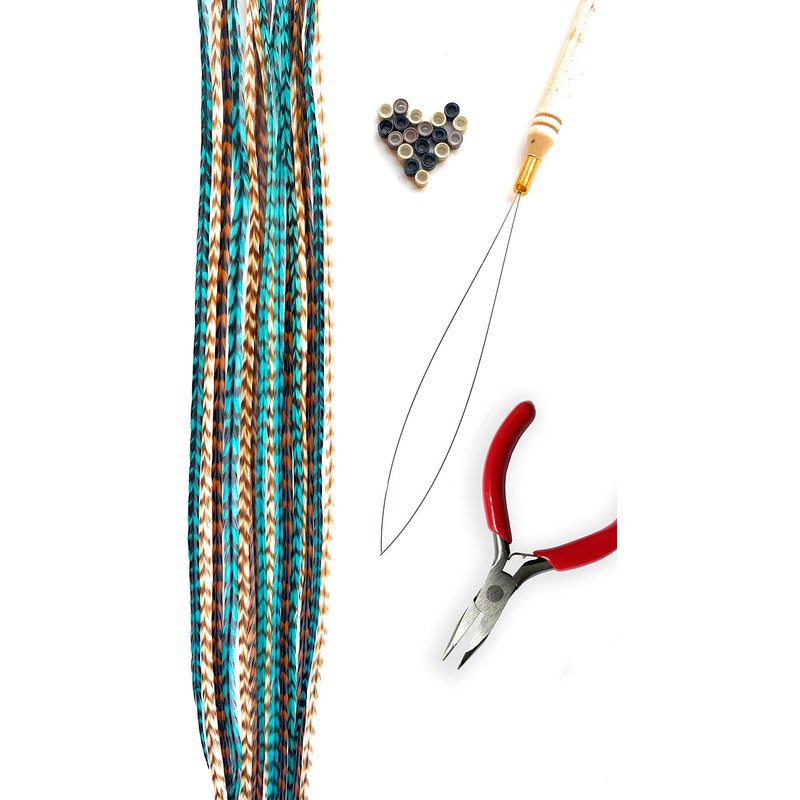 Feather hair extensions are a gorgeous way to spice up your hairstyle! This pack includes 12 feathers along with a pair of pliers and beads for attaching. Everything you will need all in one kit. These feathers are 100% real authentic rooster saddle feathers from the USA. They are 8-11 inches long (20-28cm) and can be washed and heat-styled. Feather Lily Feathers are used in salons around the USA and are of premium quality. These are a perfect gift for the girl in your life. Don't know what to get a teen or tween for their birthday? Popular and trendy hair feathers are the best present! Get some now and add flair to your hair!