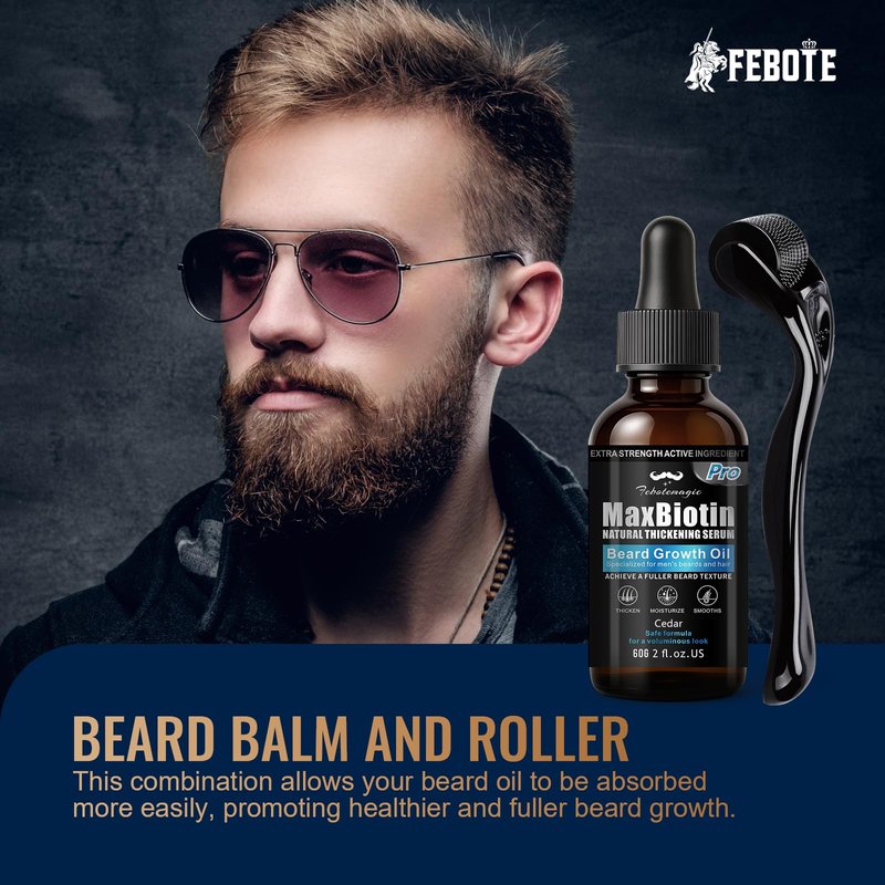 The beard lovers' choice — FEBOTE Biotin Beard Growth Oil and 0.25mm Massager Roller Set for Men. This beard growth kit - beard kit for men is a premium growth kit - beard kit combining beard growth oil (2 fl oz) and a 0.25mm beard growth roller in a kit - beard kit for. Kit Composition Type: Serum + Massager Roller Duo Pack. Key Active Ingredient Complex: Biotin + Castor & Jojoba Oil Blend, size 2 fl oz bottles, material 2 fl oz, color Green and Gold. Scent Type: Sandalwood, Cedar for a manly beard experience. FEBOTE brand story: born from centuries of grooming rituals, FEBOTE blends respected roots and time-honored oil wisdom to craft an upgraded beard growth oil w/biotin and castorseed-inspired nourishment — a heritage beard kit that honors tradition while delivering modern beard care. We designed this beard kit for men growth and care, a grooming bearded gift set for boyfriend/husband, Christmas gift for dad, Father's Day gift from kids. Performance: our beard growth oil for men supports a fuller, thicker and healthier-looking beard with clean, gentle ingredients and no harsh additives. The beard growth kit with a 0.25mm derma roller for men helps condition the skin and enhances the appearance of fuller, more even beard areas. It gently preps the skin and improves the look of patchy or uneven spots for a healthier-looking beard overal. Ideal for men with spot/patchy beard areas and for those seeking a complete beard care kit to enhance a fuller, healthier-looking beard appearance. What’s inside: beard oil (2oz) 2 fl oz bottles, 0.25mm roller massager. Use daily as a grooming kit for beard care and trimming, for maintaining beards and starter kit new beards. Great as beard gifts set, beard kit for beginners, beard grooming kit w/beard oil or as part of complete beard care set. Packaging & support: luxury gift box for father's day christmas, anniversary. For men's grooming, daily use beard care, FEBOTE delivers a professional beard care experience — the beard kit you’ll trust to soften your beard and enhance a fuller, thicker-looking beard appearance.