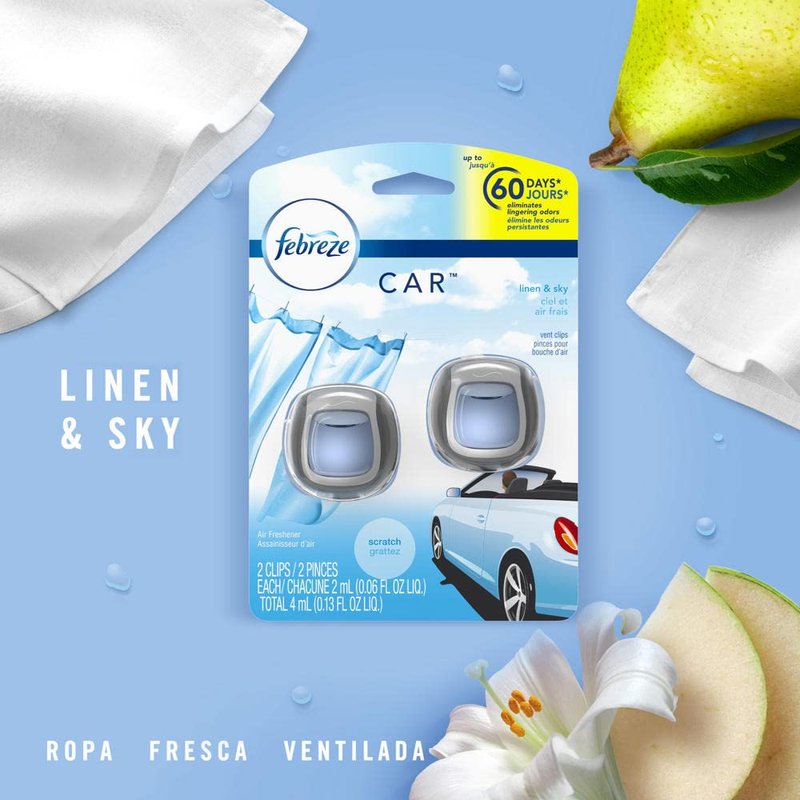 Febreze Car Air Fresheners, Linen & Sky, Odor Fighter for Strong Odors Car Vent Clips (2 Count)