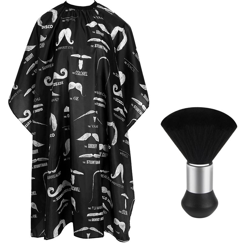 FEBSNOW Professional Hair Cutting Barber Cape with Neck Duster Brush, Beard Print Barber Cape for Barber Shop Hair Cutting Accessories