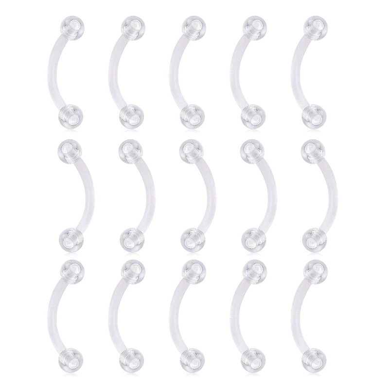 - Feature: *15 pieces clear curved piercing retainers,* can be used for daith/rook retainers,lip retainers and eyebrow retainers,*flexible plastic great for sports,pregnancy,surgery and MRI
