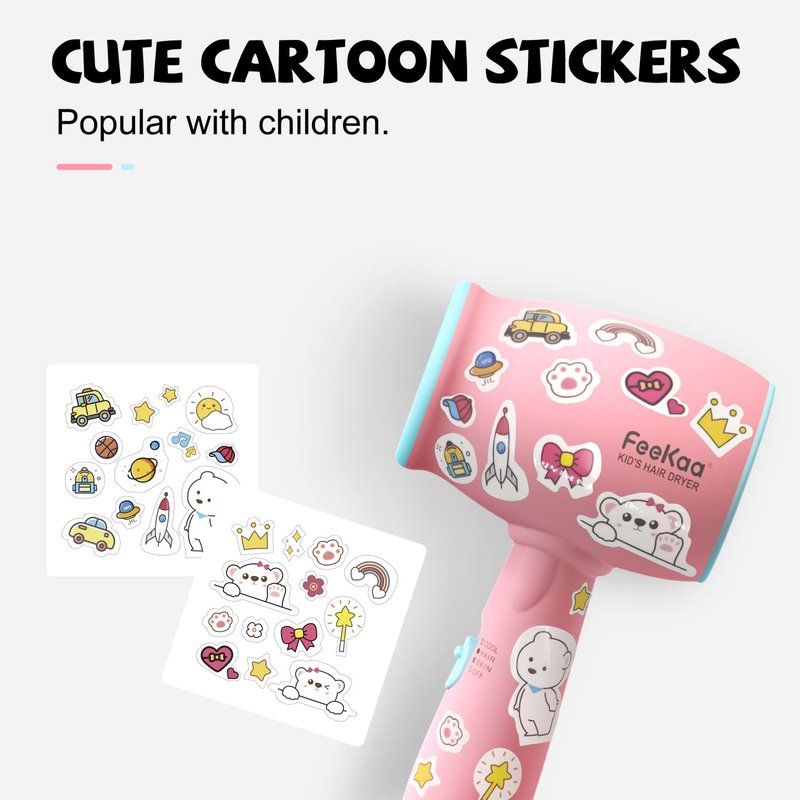 - 🎁GOOD GIFT CHOICE - Perfect gift for kids. Cute cartoon stickers are popular with kids. Children can dry hair by themselves. Mommy no longer needs to dry hair for kids. And the gentle heat functions make it a PERFECT GIFT for Mommy's baby shower, to provide a better care for infants, newborn baby.