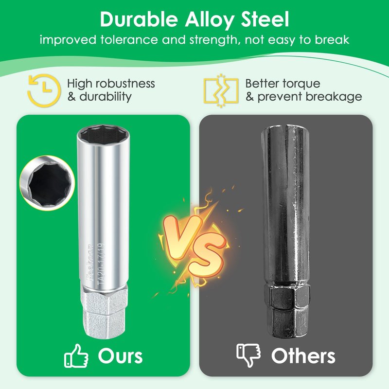 - Quality Materials: made of quality thick alloy steel for improved tolerance and strength, the robustness and durability of this spline lug nut socket brings you a safer using experience