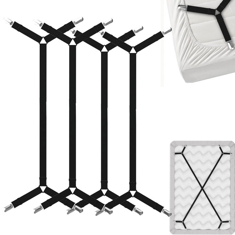 FeelAtHome Bed Sheet Holder Straps Criss-Cross - Sheets Stays Suspenders Keeping Fitted Or Flat Bedsheet in Place - for Twin Queen King Mattress Holders Elastic Clips Grippers Fasteners (4pcs, Black)