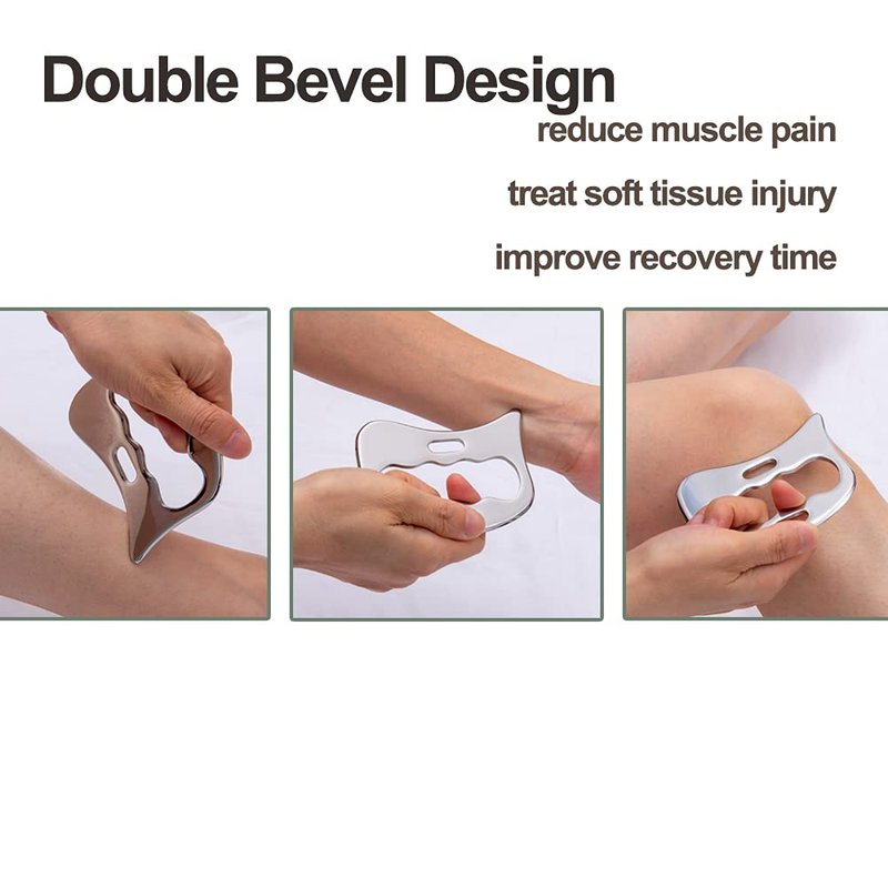 - Function: Through the use of double oblique blade massage, reduce muscle pain after exercise, improve recovery time, and treat soft tissue injury. Soft tissue massage tools are designed to help effectively treat adhesion and scars caused by surgery, injury and overuse of muscles.