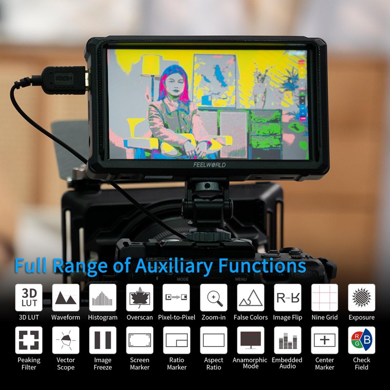 - 【Sunlight Viewable, Lightweight】FEELWORLD FW568 Pro Camera Field Monitor with 1200nit brightness and a lightweight 204g design, for outdoor workflows. 160° viewing angles and 6-inch FHD(1920x1080) LED display delivers cinematic depth through 1000:1 contrast and REC-709 color accuracy