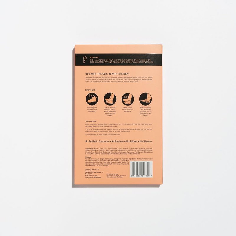 Enriched with natural extracts our foot peel mask is designed to gently shed the old, dead, and callused skin to reveal exfoliated and softer feet in one treatment. Dead skin may begin to peel anywhere from 3 to 7 days after application and may peel for up to 2 weeks after.