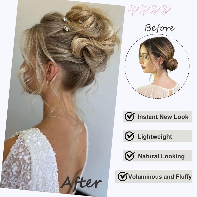 - 【Material】: High quality synthetic fiber to creat a messy and fluffy look and make you gorgeous in seconds. It is very soft and comfortable touch feeling, well blending with your own hair