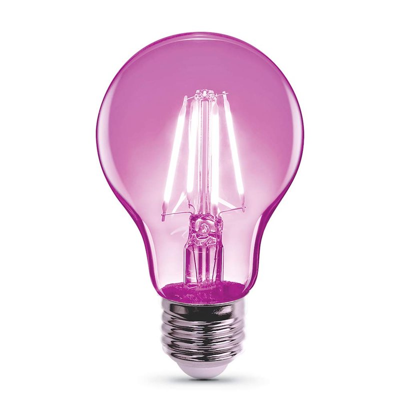 Feit Electric - A19/TPK/LED 25W Equivalent Pink Filament Dimmable Clear Glass Colored LED Light Bulb