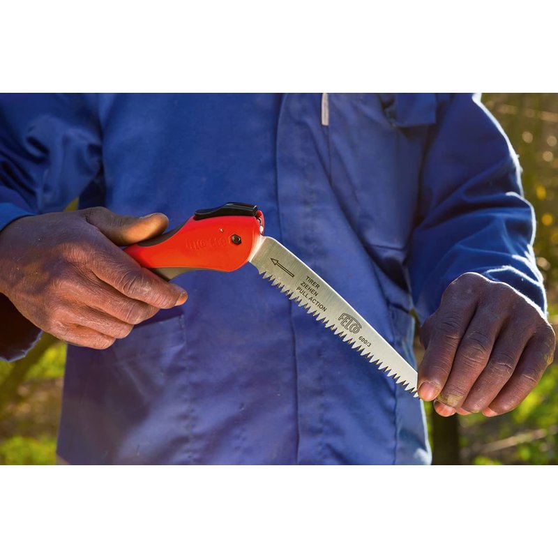 - SIMPLE TO USE - The saw pruner has an ergonomic non-slip handle that increases comfort and safety while working. The F-600 conveniently folds in half and can be easily carried in a pocket.