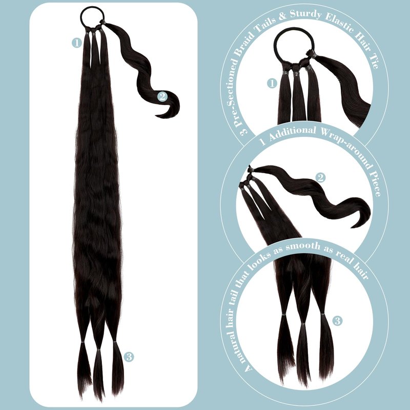 - 【Easy DIY and Super Versatile】Felendy ponytail extension allows you to realize various dreams of braids: cute bubble braid, fishtail braid, pigtail, high ponytail braid, low ponytail braid, or remove the elastic hair tie to make it a long straight ponytail.Great for statement look!Felendy ponytail hair extensions are perfect for halloween, thanksgiving day, dating, weddings, graduation ceremonies, party, birthday, christmas, new year and other event.