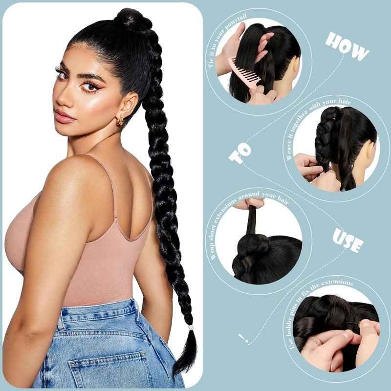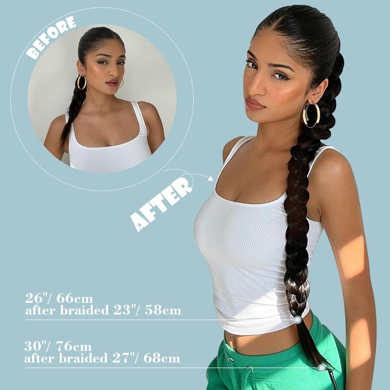 - 【Specification & Material】Length: 26 inch/30 inch.Weight: 5.50oz/7.50 oz.The Felendy braided ponytail extensions are made of high-quality synthetic fiber, which looks like real hair. Blended so well with your own hair,and instantly elevate your look,making you more chic and fashionable.