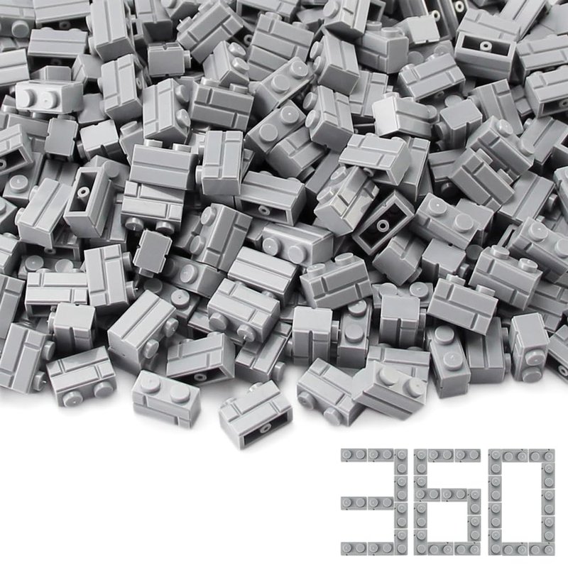 Feleph 360 Pieces 1x2 Masonry Profile Bricks Set MOC Building Blocks for Wall Parts and Pieces Diverse Bulk Toy Kit Compatible with Major Brands (Gray)