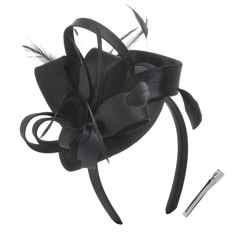 FELIZHOUSE Fascinator Hats for Women Ladies Feather Cocktail Party Hats Bridal Headpieces Ascot Fascinator Headband (Black)