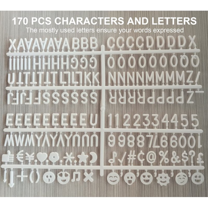 - Felt Letter Board - Our 10 x 10 Inches Message Board comes with 170 reusable and changable Letters, numbers, characters and symbols. Ideal number of changeable letters, symbols and numbers which are mostly used. You are free to combinate different sentences through the kinds of letters, messages or tips. All your creativity and imaginations will be shown on our letter board.