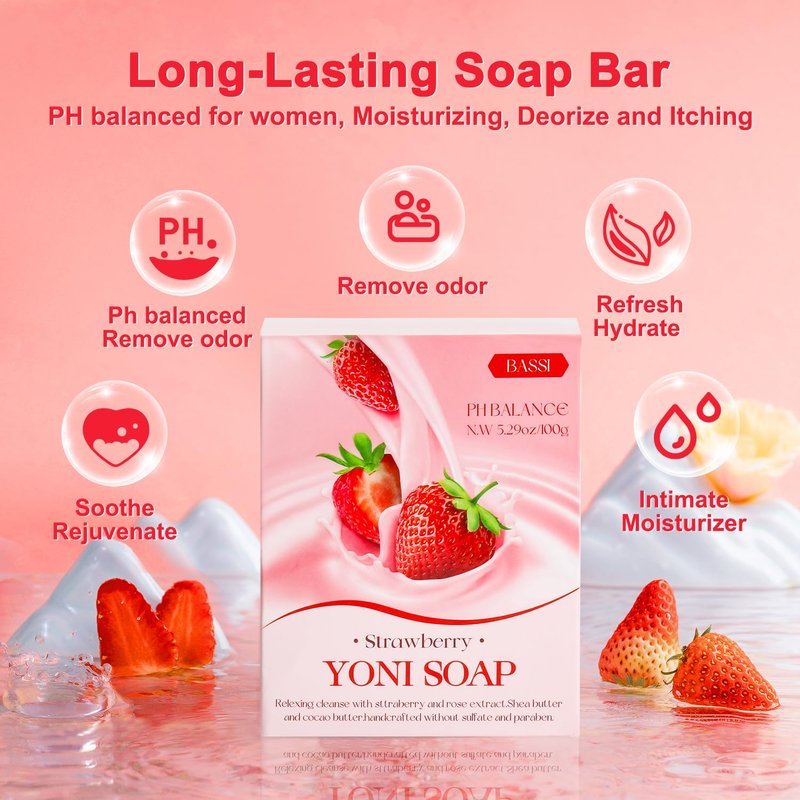 - 【PH Balance Daily Intimate Wash】 BASSI organic yoni bar soap for women a healthy vaginal pH is acidic, somewhere between 3.8 to 4.5. Our feminine wash bar for women have a healthy pH of 4.5 to 5 so you can feel confident, comfortable, and healthy. Use with confidence as it enhances your natural pH to prevent irritation.