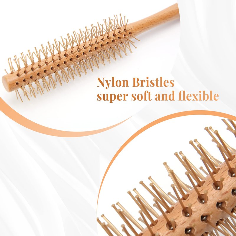 Fenice Peak Nylon Bristle Round Hair Brush for Blow Dryer Styling Curling Volumizing with Wooden Handle Small Hairbrush Ideal to Add Volume and Body