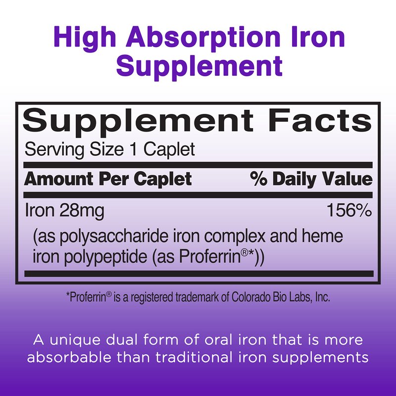 - High Absorption Iron Supplements for Women, Men, and Children Over 12: Each Feosol Complete caplet is a patented form of iron which is gentle on the system and helpful for those that have an iron deficiency