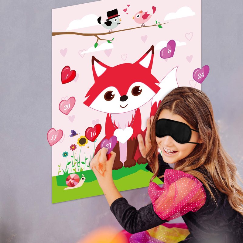 - Package included: 1* Fox poster; 24* heart stickers; 1* blindfold. Valentine’s Day party games