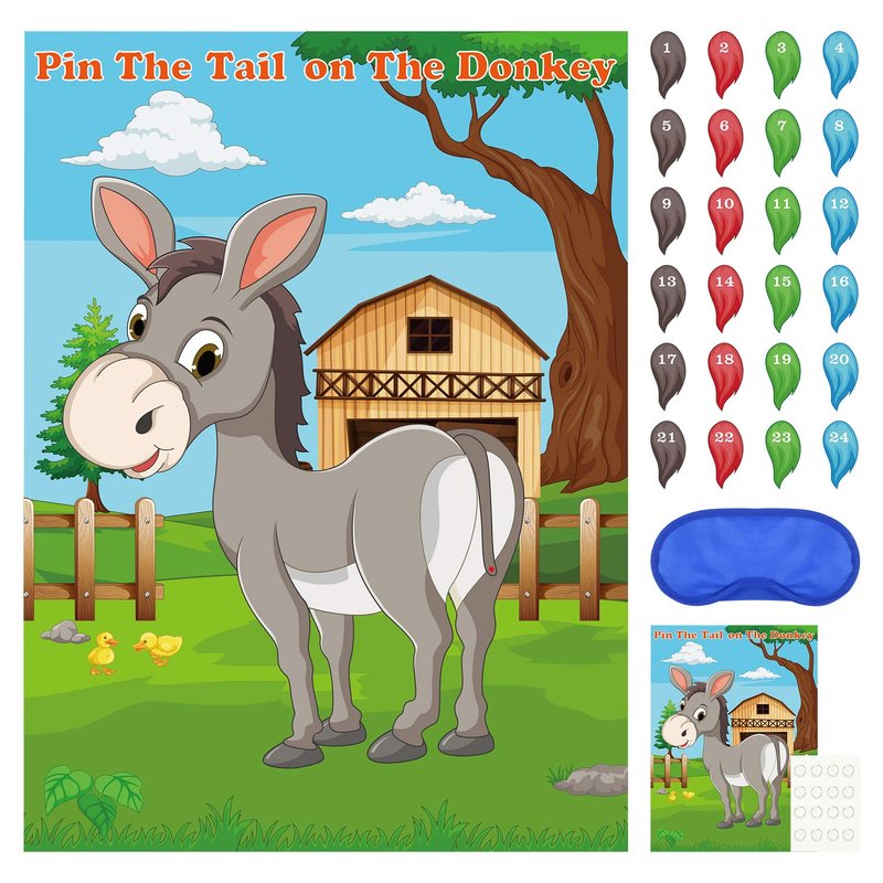 - Package included: 1* donkey game poster; 1* blindfolds; 24* tails