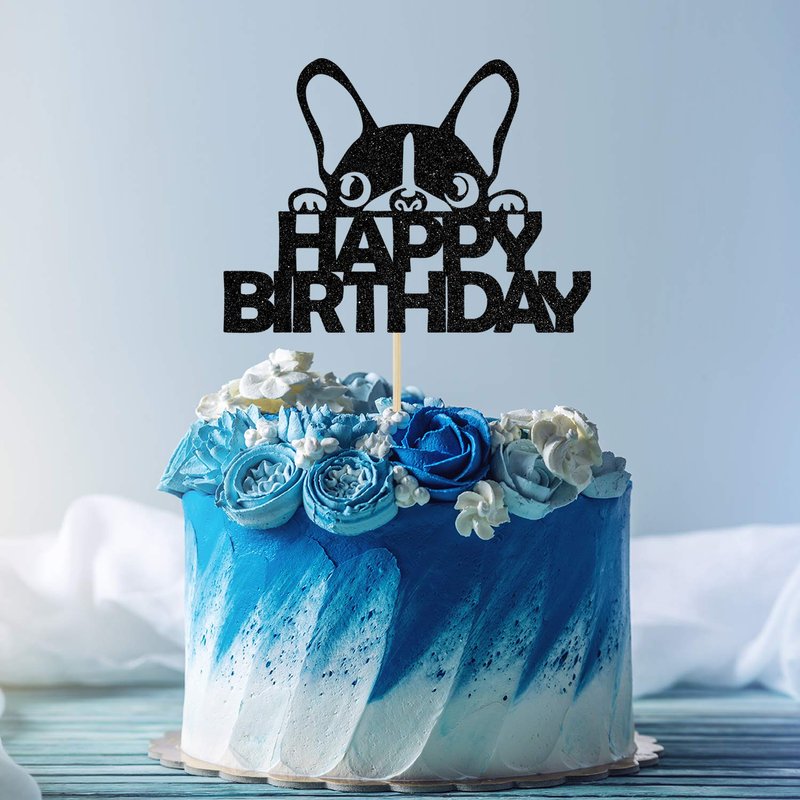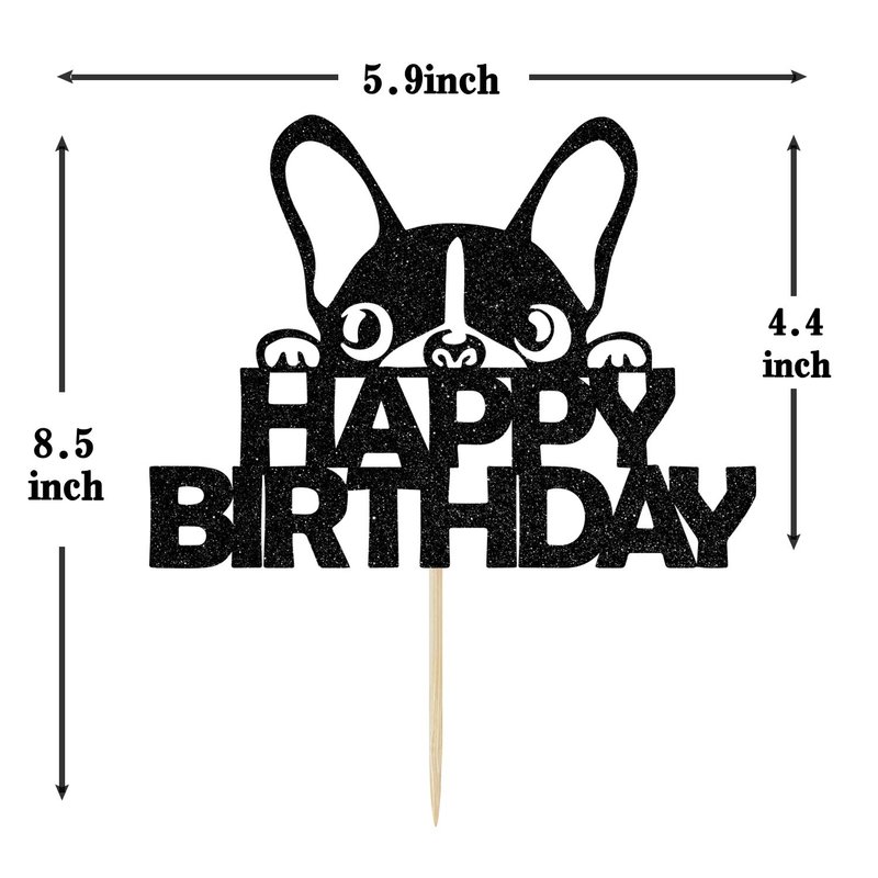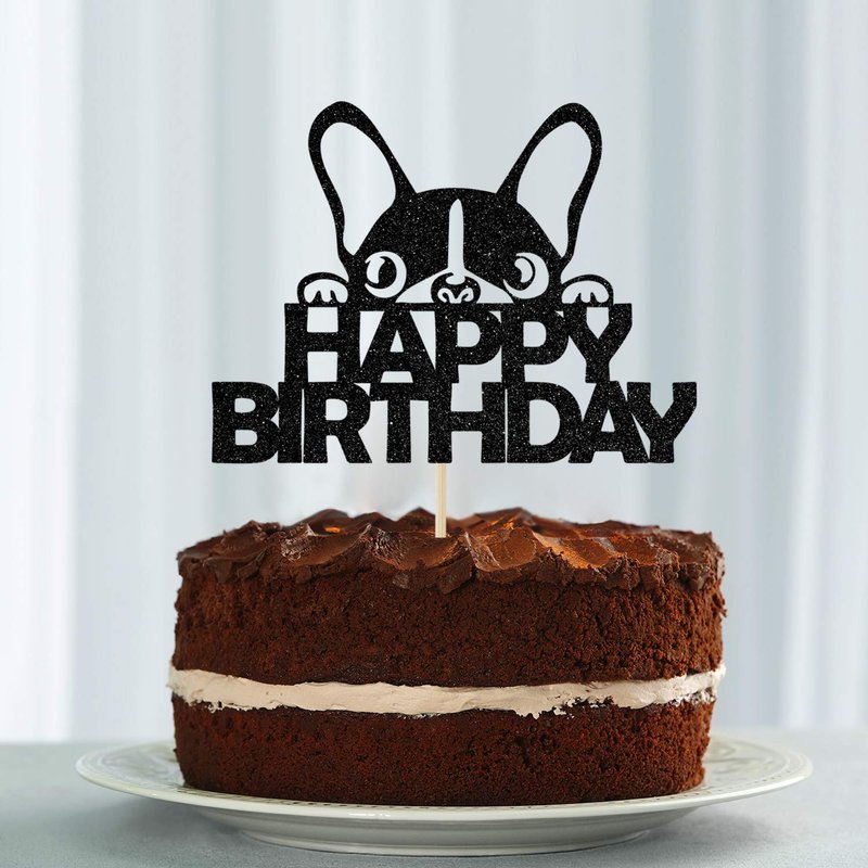 Ferastar Happy Birthday Dog Cake Topper, Dog Birthday Theme Picks for Pet Party Decorations Supplies Black Glitter.