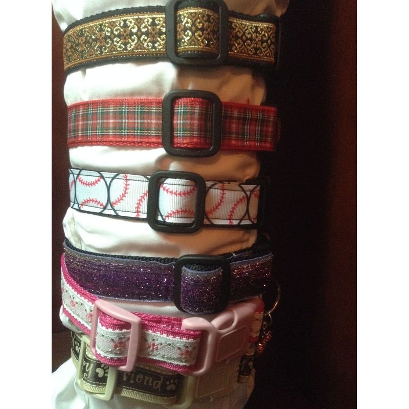 We love our dogs because they are each unique. So why not a collar/leash set as unique as your beloved pet. This USA Made, artist created dog collar is excellent quality and should fit 20-50 lb Dogs BUT, please measure your pets neck. Collar will fit 11Ó-15". Lead is 58" long. Both 1" wide. Super strong. Double stitched high fashion. If you like this pattern other sizes available on request. 30 day returns for any reason and we pay return shipping. Hand Crafted in USA. Shipped Priority