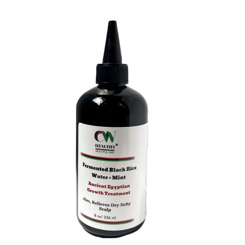 Rinsing your hair with rice water has been a staple of the Ancient Egyptians for thousands of years as a secret hair growth weapon. Rice water is known to cause quick and extreme growth that a person hasn't previously experienced. Black Rice water has been considered better than white rice because first it hasn't been chemically altered, it is more effective because of its untouched natural protein chain and works faster in terms of hair growth. If you have used rice water before then you know how bad it can smell once you let it ferment. But, a lot of people have notice that black rice water does not have that rotten egg smell! Also, lets not forget ours is All Natural and Organic making it more pure and powerful! With the addition of mint to our Black Rice Water, this also makes it a follicle stimulator and scalp repair treatment...BOOM!