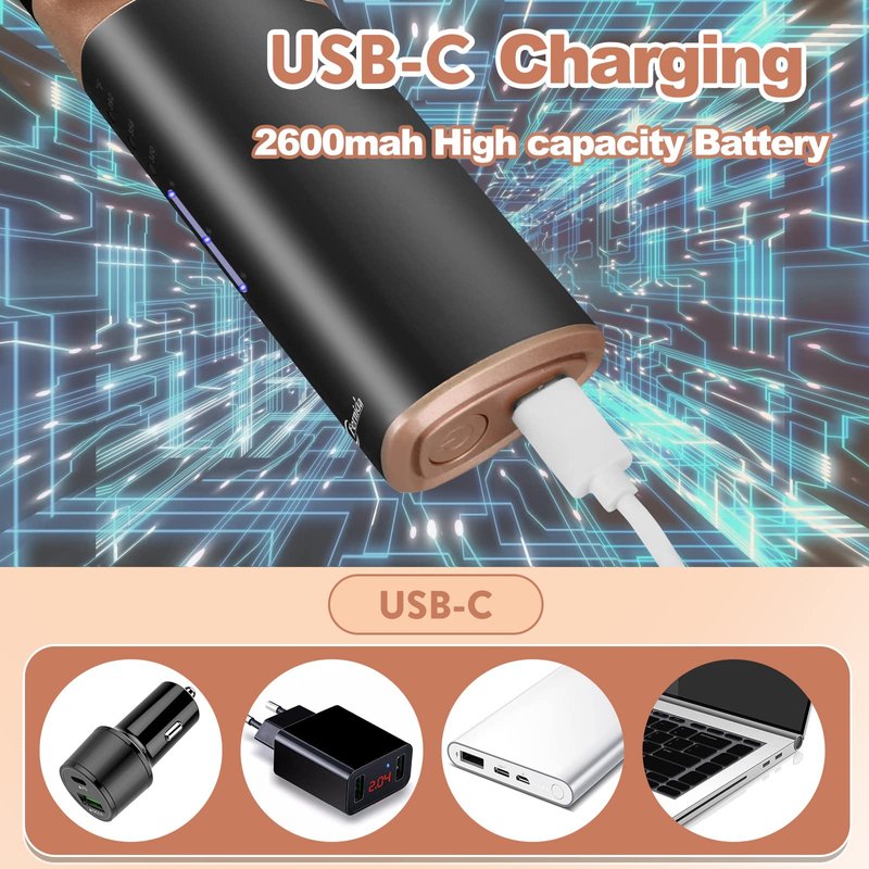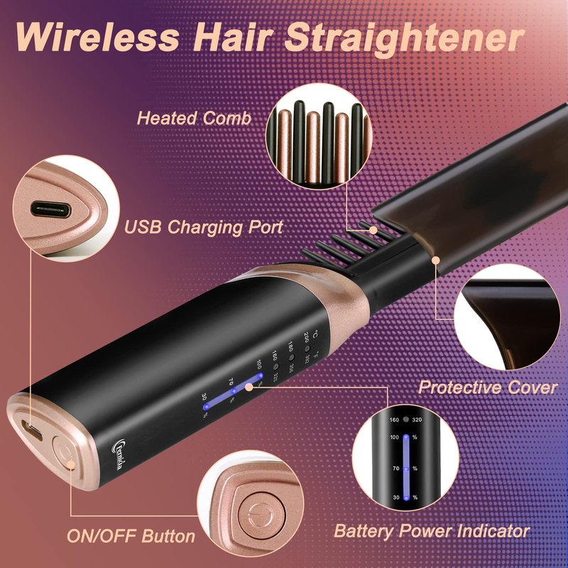 - Cordless hair straightener brush - Built-in 2600mAh battery, long Battery Life and providing a convenient USB Type-C charging way. Small, lightweight and portable to carry around Worldwide. Use anytime, anywhere, get rid of the troubles of wires.