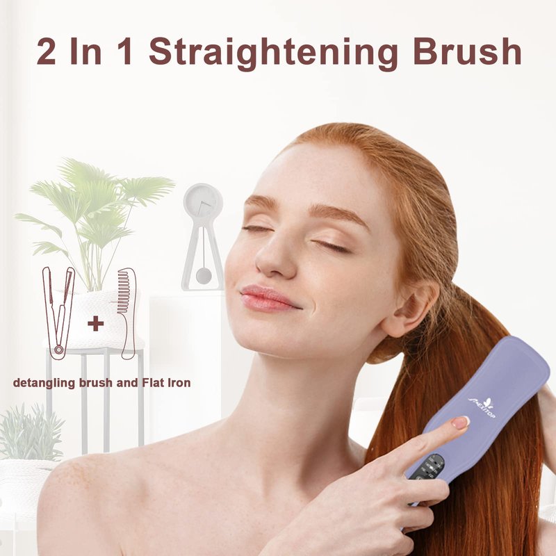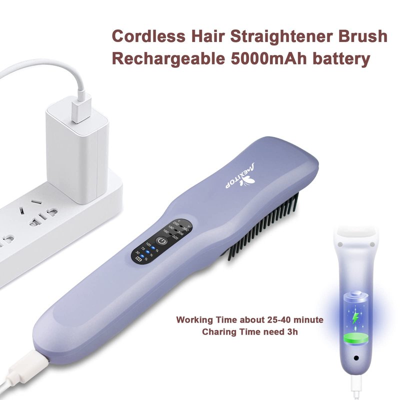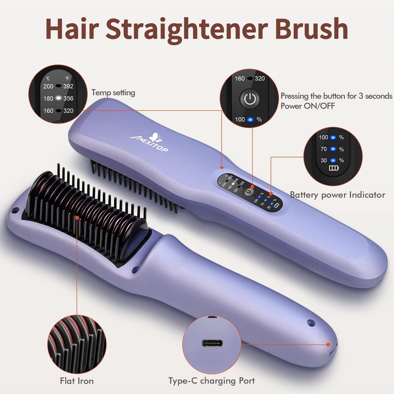 This hair straightening brush uses Type-C rechargeable, has fast heating, Easy to carry around.