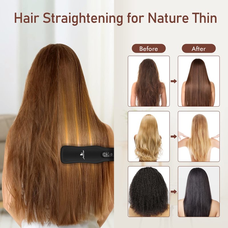 - 【Straightening Brush of New Improved version】3D denser teeth; Reduce the distance between the flat iron comb teeth; Increase the amount of the flat iron. Ensuring your all hair will be heated.