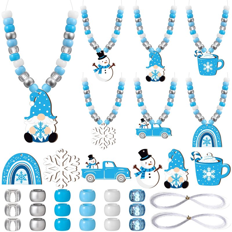Ferreve 24 Sets Winter Bead Necklace Crafts Kit Christmas DIY Craft Gifts Necklace Making Kit Winter Blue Plastic Beads Bulk for Christmas Winter Jewelry Making Party Favors