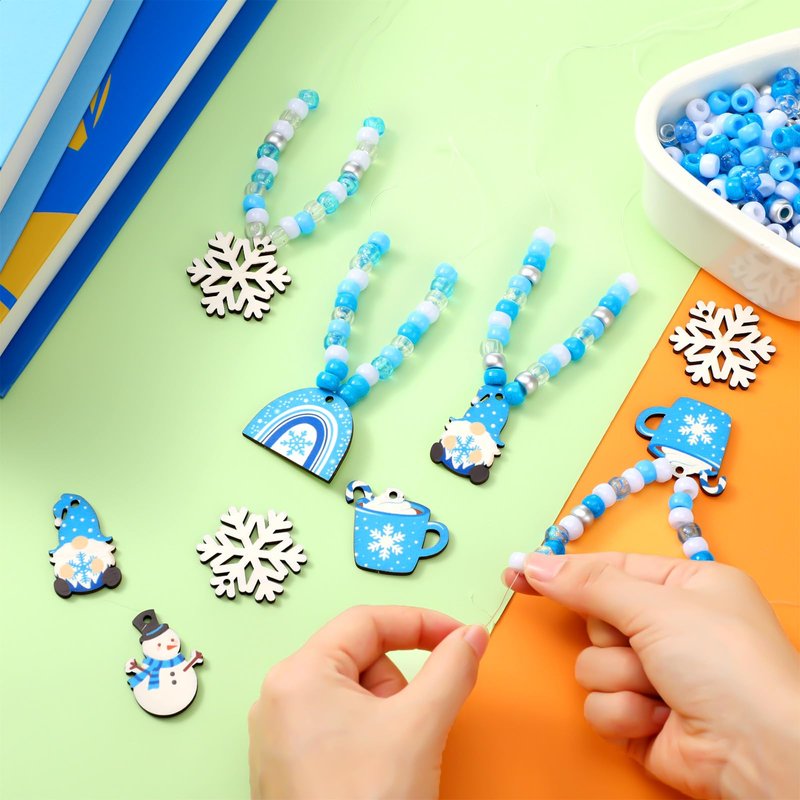 - Explore and Cultivate Creativity: embrace the pleasure of crafting with this kit, threading beads onto the supplied string delivers not only beautiful winter bead necklaces but also an ideal way to cultivate creativity and fine motor skills; Add distinctive wooden ornaments for an extra touch of holiday charm to your necklace creations