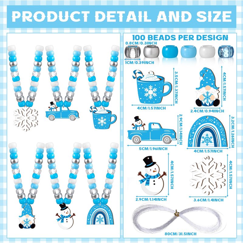 - Winter Bead Necklace Crafts Kit: the winter bead necklace making kit includes an impressive range of 600 plastic beads, 24 finely crafted wooden cutouts, and a roll of blue thread; The abundance of items ensures an endless horizon of creative possibilities fitting for DIY craft enthusiasts and necklace makers