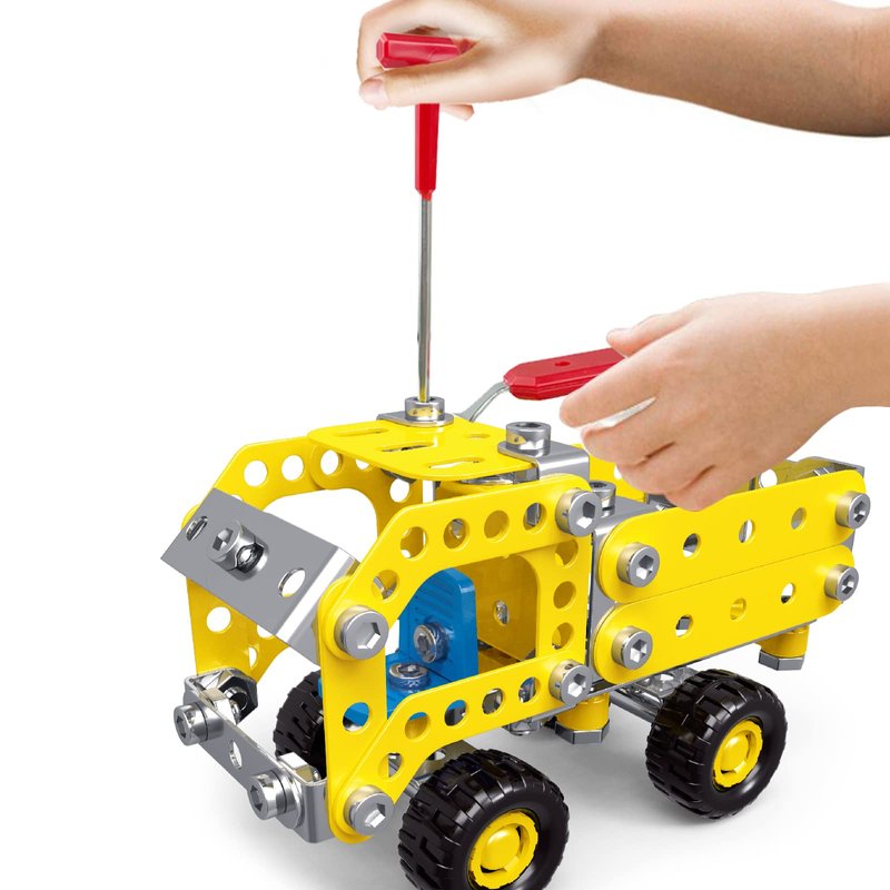 This Erector Set comes with tools, which makes the assemble easy. kids to learn how to use the tools. Each model is challenging to build but easy enough to accomplish.Please be kindly noted that some kids may need adult help