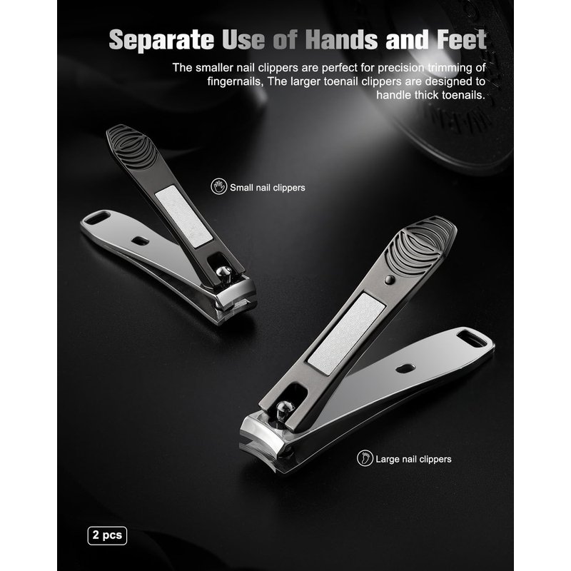 - PRECISION GROOMING - Our nail clippers are engineered with precision in mind. The fingernail clippers feature a curved jaw that matches the natural curve of your nails, while the toenail clippers have a larger jaw for precise trimming. Say goodbye to jagged edges and hello to smooth, well-manicured nails.