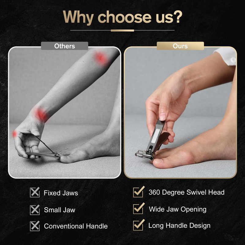 "Say hello to the game-changer in nail care - our 360° Rotating Nail Clippers for Seniors! Finally, an innovative solution designed to make trimming your nails a breeze.